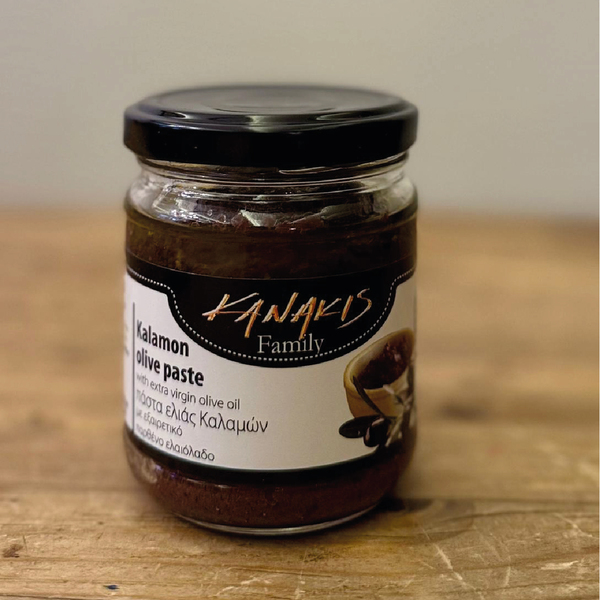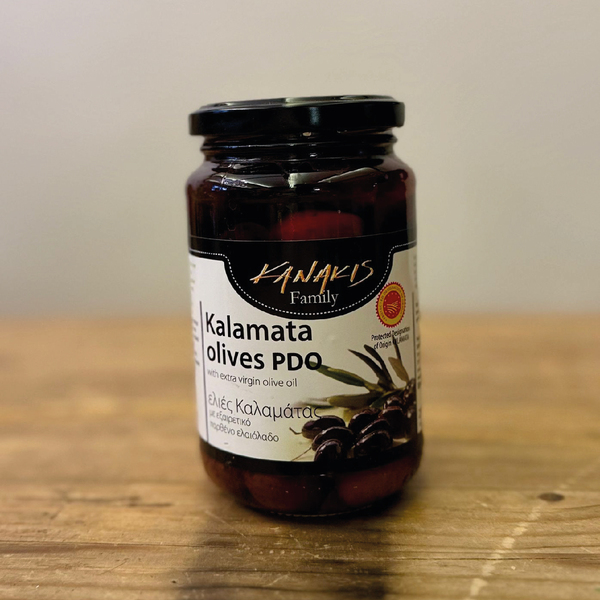 Zutaten: Kalamata Oliven, extra natives Olivenöl, Essig, Meersalz, Wasser, Ohne Konservierungsmittel