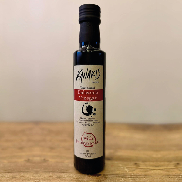 Dieser Balsamico wird aus den Trauben der Region Kalamata hergestellt und reift 4 Jahre lang in Eichenfässern. Er enthält keine Sulfate und keine Karamellfarbe. Es handelt sich um ein 100% natürliches Produkt.