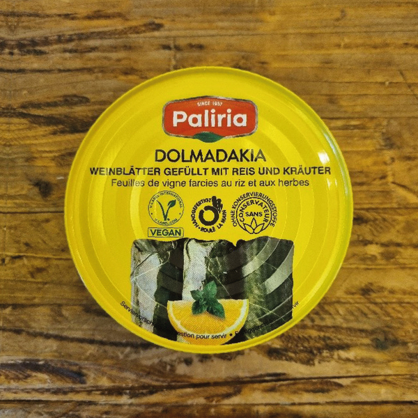 Zutaten: Reis, Wasser, Weinblätter, Sojaöl, Zwiebeln, Kräuter (Dill, Minze) Zitronensaftkonzentrat, Salz, schwarzer Pfeffer