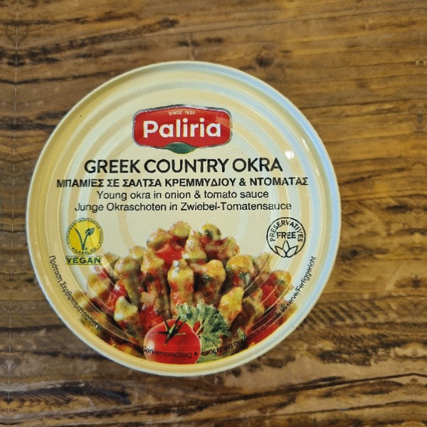 Zutaten: Okraschoten, Zwiebel-Tomatensauce (Wasser, Zwiebeln, Tomatenmark, geschälte Tomaten, Salz, Rotweinessig, Zucker, Sojaöl, Petersilie, Knoblauch, Paprika Extrakt, roter Pfeffer, schwarzer Pfeffer) Sojaöl